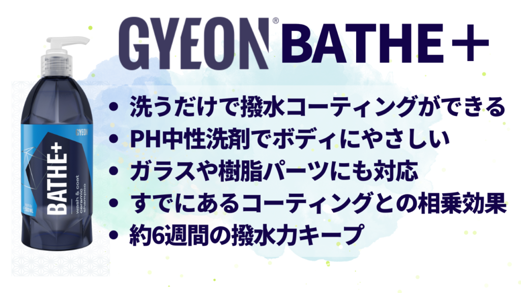 GYEON BATHE+ is not just a car shampoo, but a hybrid type that simultaneously cleans and protects.